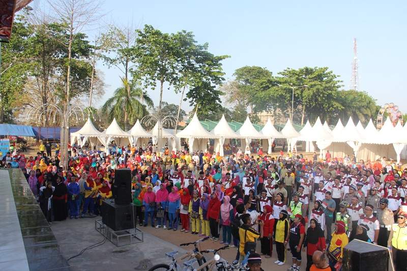 METRO- Ada yang berbeda dalam pelaksanaan Car Free Day di Lapangan Samber Kota Metro pada Minggu, 5 Agustus 2018. Selain senam bersama seperti biasanya, kegiatan itu juga dimeriahkan dengan pernyataan bersama dukungan Pemerintah dan masyarakat Kota Metro terhadap Asian Games 2018 serta semangat menyambut HUT RI ke-73, dengan tema“Indonesia Harmoni 2018 Kita Sukseskan Asian Games 2018 dan Dirgahayu Kemerdekaan Republik Indonesia Ke-73 Tahun 2018”