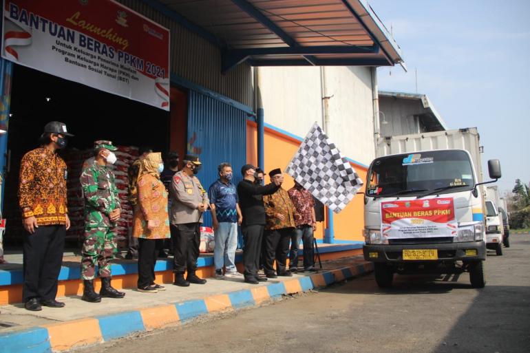 BENGKULU- Gubernur Bengkulu, Rohidin Mersyah, melepas Penyerahan Bantuan Beras PPKM 2021 untuk Keluarga Penerima Manfaat (KPM), Program Keluarga Harapan (PKH) dan Bantuan Sosial Tunai (BST) se Provinsi Bengkulu. Acara ini berlangsung di Gudang Bulog Sidomulyo KM. 8 Kota Bengkulu, Ahad (18/07).