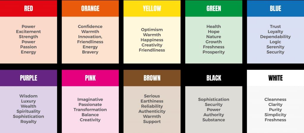 - Pink: Warna ini sering diasosiasikan dengan keindahan, pesona, empati, feminitas, kepolosan, keceriaan, romansa, dan kelembutan.