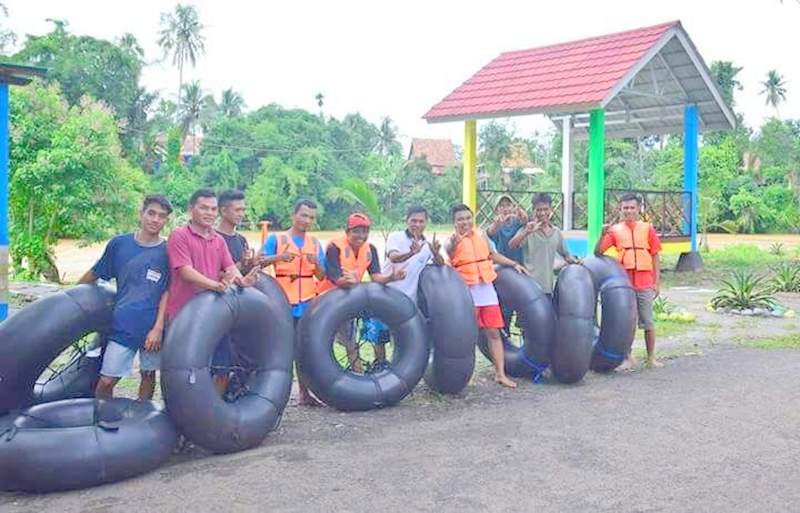 Perjalanan seru kami lanjutkan, derasnya arus/jeram dilalui, tak terasa 7 kilo meter dengan jarak tempuh 2 jam kami lewati dan finish point menanti kami di desa Bandar Dalam kecamatan Negeri Agung. Ditepi jalan mobil pick up menjemput kami, setiba di Di Kampung Gedung Batin tempat kami start awal, kami makan bersama di basecamp sembari menikmati manisnya durian lokal dari hasil kebun warga sekitar.![]()